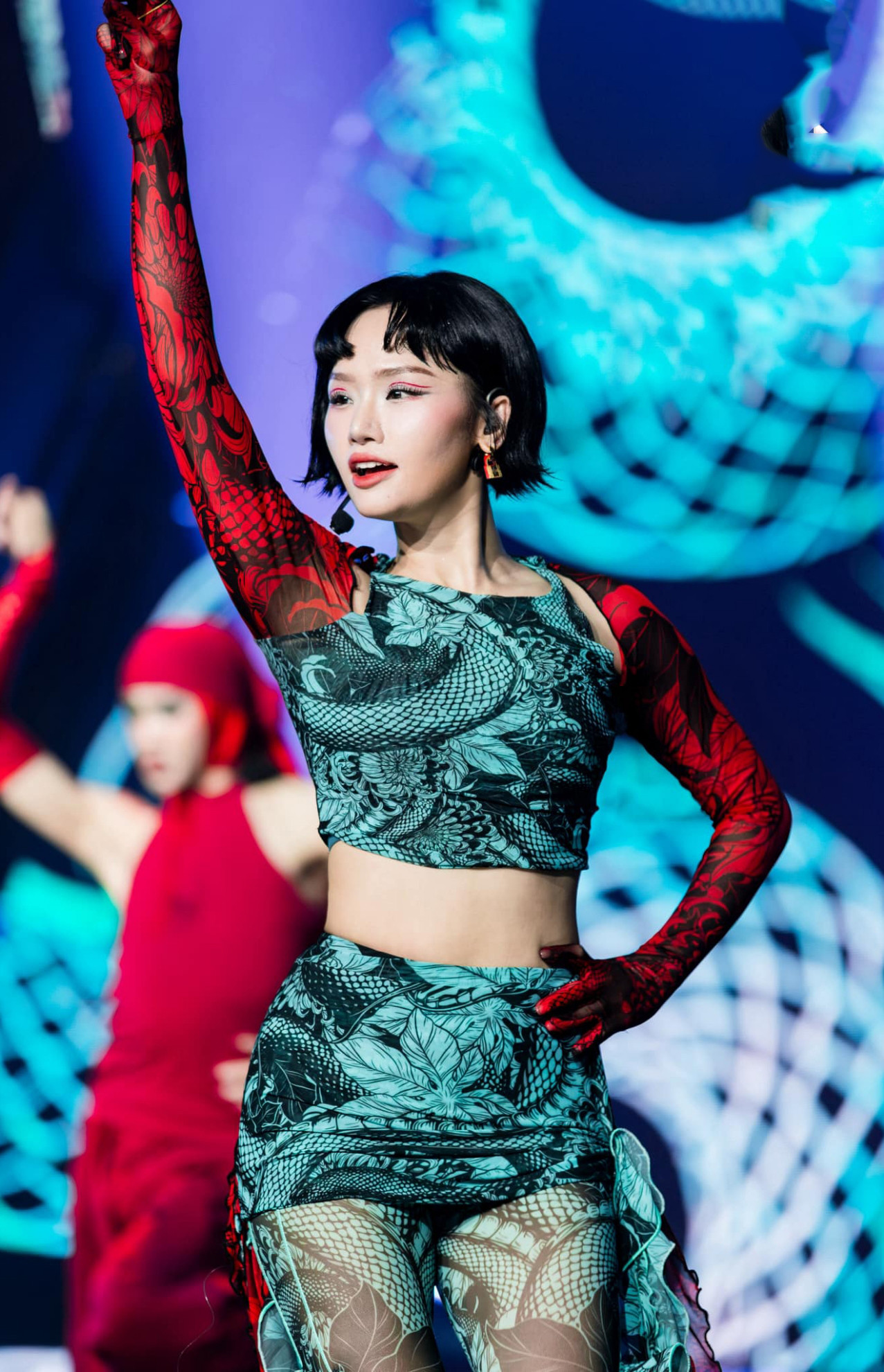 Ca sĩ Miu Lê trong buổi showcase phim "Đại tiệc trăng máu 8".